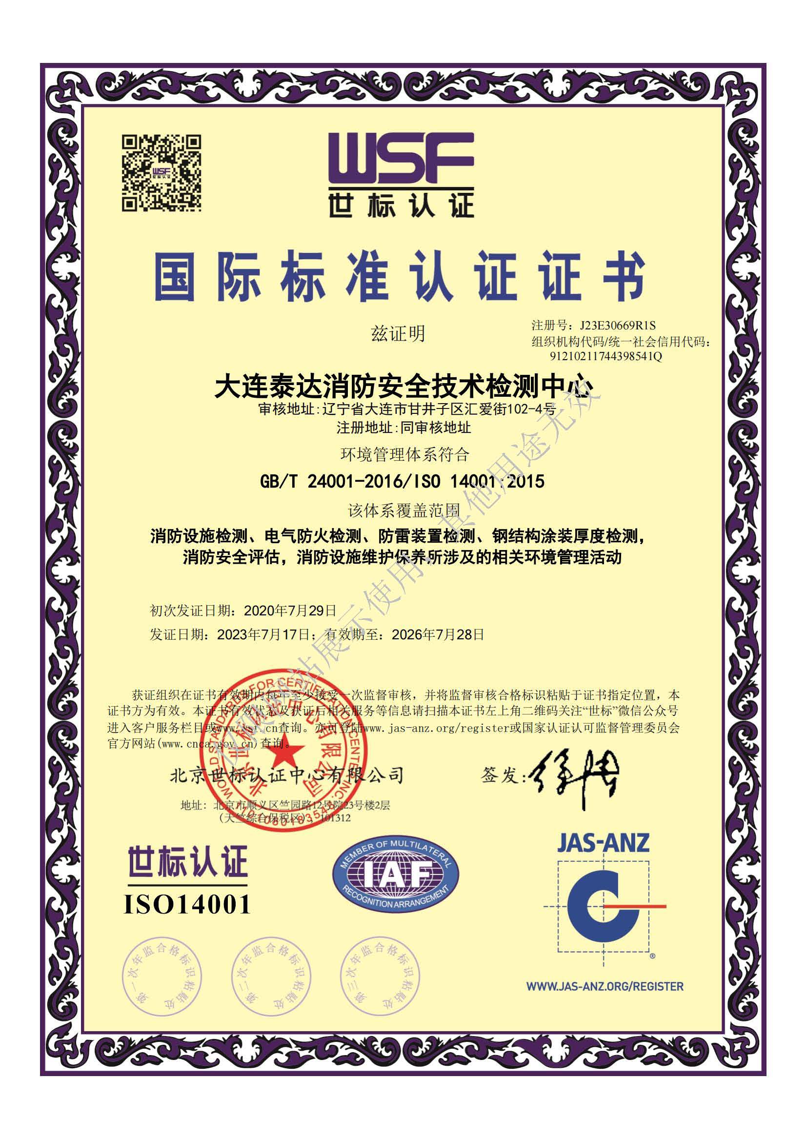 · 是經(jīng)“社會(huì)消防技術(shù)服務(wù)信息系統(tǒng)”備案并公示的消防技術(shù)服務(wù)機(jī)構(gòu),已取得中國氣象局頒發(fā)的雷電防護(hù)裝置檢測(cè)資質(zhì)證書、遼寧省質(zhì)量技術(shù)監(jiān)督局審核批準(zhǔn)的檢驗(yàn)檢測(cè)機(jī)構(gòu)資質(zhì)認(rèn)定證書(CMA)及包括消防檢測(cè)、電氣檢測(cè)、雷電防護(hù)裝置檢測(cè)、防火涂層厚度檢測(cè)等在內(nèi)的200余項(xiàng)檢驗(yàn)檢測(cè)能力,取得大連市應(yīng)急管理局頒發(fā)的安全生產(chǎn)標(biāo)準(zhǔn)化證書,獲得質(zhì)量管理體系、環(huán)境管理體系、職業(yè)健康安全管理體系認(rèn)證證書,是經(jīng)備案的高新技術(shù)企業(yè),可獨(dú)立出具具有證明作用的檢測(cè)報(bào)告。
